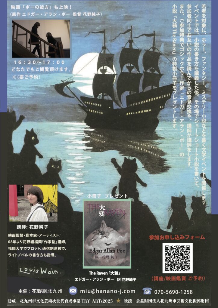 北九州市で再び小説講座を開催!今回は、映画「ポーの彼方」も上映します。